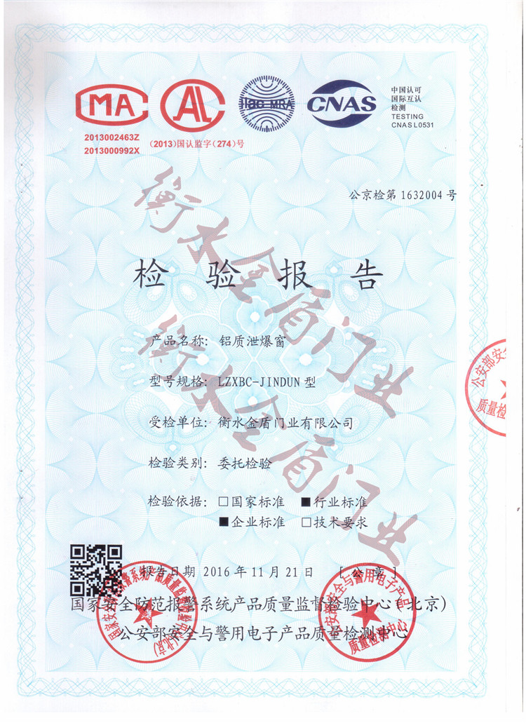 铝制泄爆窗-泄爆锁检验报告
